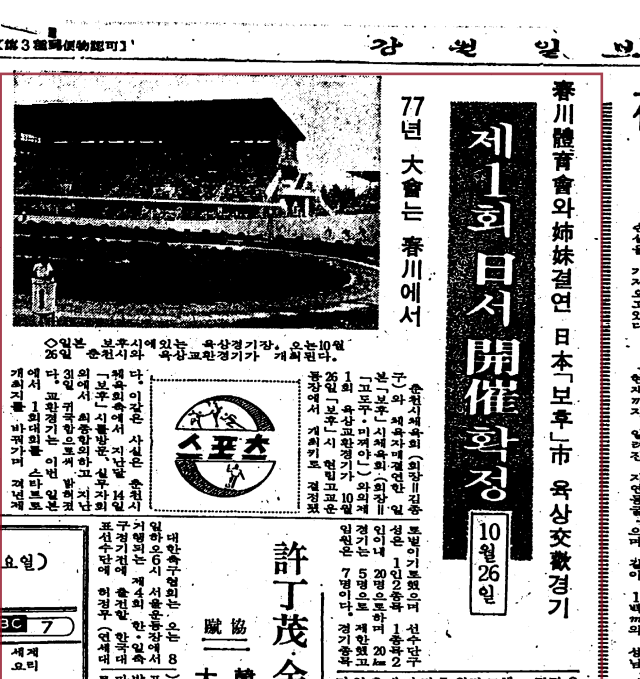 강원일보는 1975년 9월3일자 4면에 '춘천체육회와 자매결연 일본 호후시 육상 교환 경기 제1회 開催확정[10월26일]-77년 대회는 춘천에서'를 제목으로 기사를 싣고 양 도시의 교류 출발을 알렸다. 이케타 유타카 시장은 과거 1회 대회에 자원 봉사자로 참가한 추억을 춘천시에 전했고, 시와 강원일보는 이번 방문을 기념해 옛 기사를 활용한 동판을 만들어 전달할 예정이다.