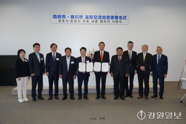 춘천시와 호후시는 1975년 한일친선육상대회를 계기로 인연을 맺은 후 자매 도시로 교류를 이어왔다. 하지만 2008년 한일 관계가 악화되면서 공식 교류가 멈췄고 17년이 흐른 올해 비로소 교류가 재개됐다. 육동한 시장은 지난 4월 호후시를 찾아 우호 협력 증진 합의서를 맺고 협력 관계 복원을 약속했다.
