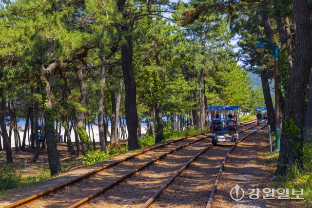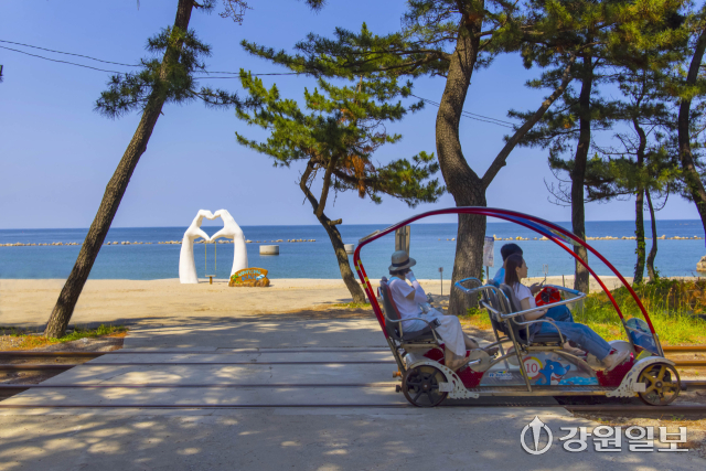 지난 2010년 7월 개장한 삼척해양레일바이크는 일제 강점기에 건설을 시작했다가 중단된 철로를 활용해 삼척시 근덕면 궁촌리~용화리간 5.4km 구간을 복선으로 운행하고 있다.