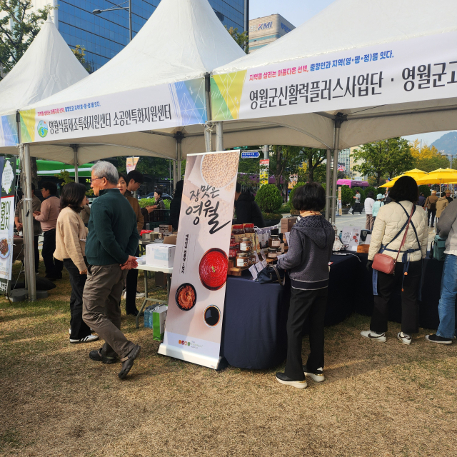이날 오전11시부터는 프레스센터 앞 광장에서 영월과 평창, 정선 등 지자체들이 나와 고향사랑기부제 홍보와 특산품 홍보·판매전을 펼쳤다. 특히 경주 APEC에서 이재명 대통령이 주최한 '6개국 정상 특별만찬'에 올라 화제가 됐던 영월 오골계의 주인공 '백봉 오골계'와 프리미엄 수제 디저트 브랜드 '비채' 등 향토 기업들이 참여해 눈길을 끌었다.