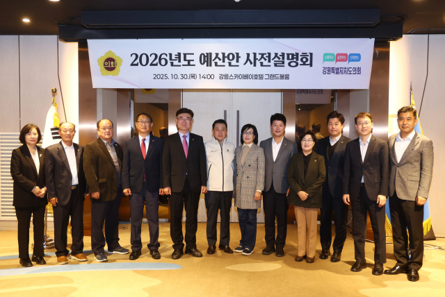 강원특별자치도의회 예산결산특별위원회(위원장:최승순 의원)는 30일 강릉 스카이베이호텔 경포 그랜드볼룸에서 최승순 위원장, 김시성 도의장 및 특위 위원들이 참석한 가운데 ‘2026년도 예산안 사전설명회’를 개최했다.
