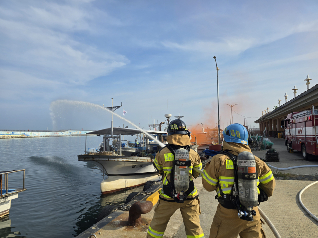 속초해양경찰서(서장:이우수)는 30일 양양 수산항에서 동절기 어선 화재사고 대비 민·관 합동 기본훈련을 실시했다.