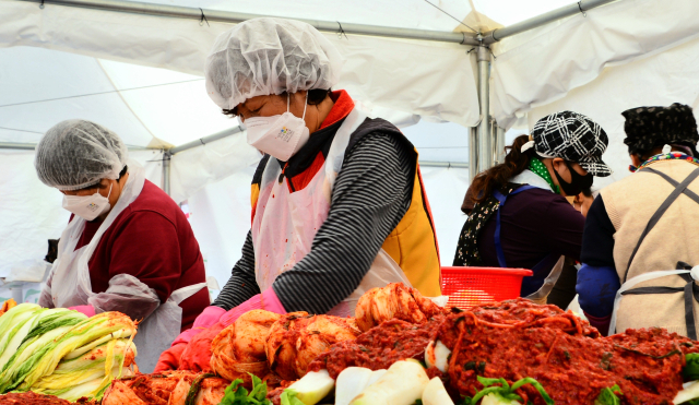 평창군 ‘제4회 명품 대화초 김장잔치’가 지난달 31일 대화면 별다방 앞 광장에서 개막했다. 이번 축제는 4일까지 계속된다,