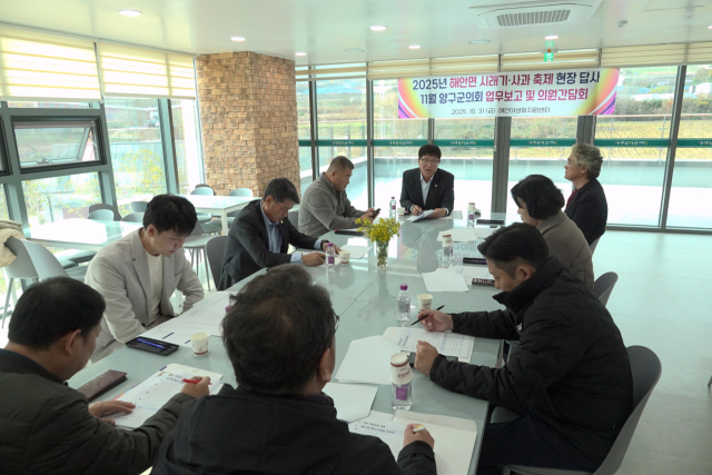 양구군의회(의장:정창수)는 지난달 31일 해안야생화지원센터에서 '11월 의원간담회'를 실시하고, 해안면 펀치볼힐링하우스에서 열린 2025 청춘양구 펀치볼 시래기 사과축제를 답사했다.