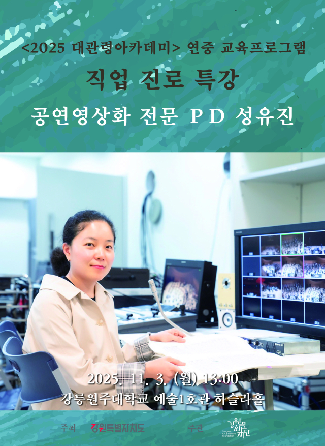 이번 만남은 강원문화재단 평창대관령음악제의 ‘직업 진로 특강’의 일환으로 마련됐다. 2025 대관령아카데미 연중 교육프로그램을 통해 차세대 음악가들의 성장 발판을 마련하고 있는 음악제는 공연영상화 전문 PD이자 영상 프로덕션 씨콘박스 대표인 성유진 PD의 강연을 마련했다.