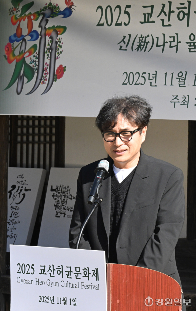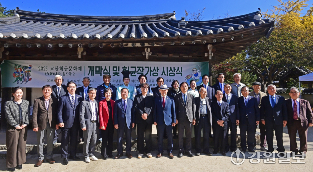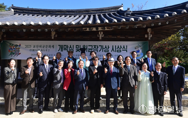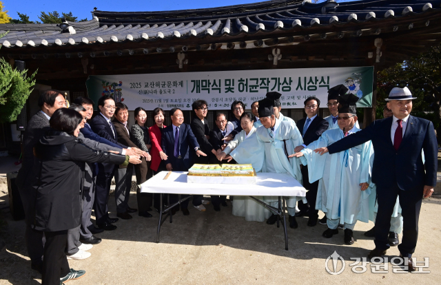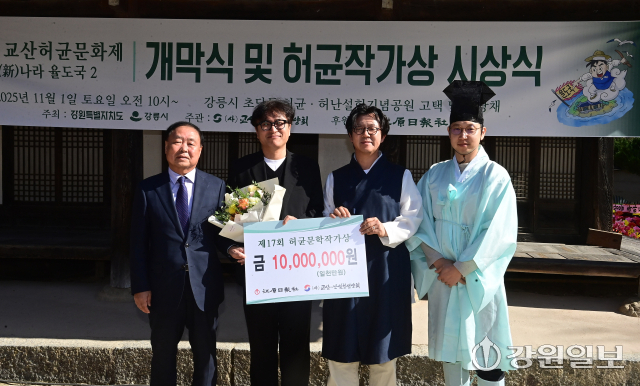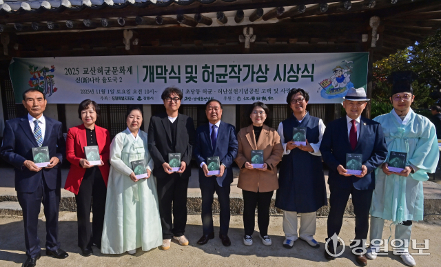 2025 교산허균문화제 및 허균문학작가상 시상식이 1일 강릉 허균·허난설헌 기념공원에서 우승룡 강원일보 강릉본부장, 유선기 (사)교산·난설헌선양회이사장, 김별아 강원문화재단 이사장, 허균문학작가상 수상자인 원주출신 이기호 소설가 등 관계자들이 참석한 가운데 열렸다. 강릉=권태명기자