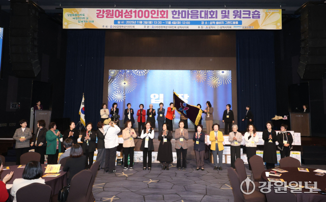 (사)강원여성100인회 한마음대회&워크숍이 3일 쏠비치 삼척 대연회장에서 김동자 강원여성100인회 이사장, 원현순 김진태 도지사 부인, 한미숙 신경호 도교육감 부인, 박상수 삼척시장, 권정복 삼척시의장, 안정희 도여성단체협의회장, 이금선 도민생경제자문관 등이 참석한 가운데 열렸다.