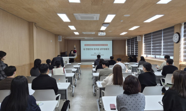 고성교육지원청(교육장:홍성봉)은 4일 청사 3층 대회의실에서 직원과 지역 내 초·중·고 지방공무원 60명을 대상으로 ‘2025년 민원 업무 담당자 행정서비스 친절 교육’을 실시했다. 춘천교육지원청 송민경 장학사의 특강으로 진행된 이날 교육을 통해 참석자들은 대면 응대와 전화 매너, 악성민원 매뉴얼 및 노하우 등과 관련된 지식을 습득했다.