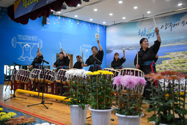 제20회 양구 국토정중앙면민화합 한마당 큰잔치 개막식이 4일 국토정중앙면 용하체육관에서 서흥원 양구군수, 김왕규 도의원, 김선묵 양구군의원을 비롯한 기관·사회단체장과 지역 주민 등이 참석한 가운데 열렸다.