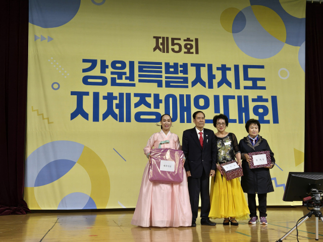 유공자 시상식에서는 도지사상에 박선미 원주시장애인편의증진기술지원센터 팀장, 진주화 속초시지체장애인협회 자원봉사자, 송미자 철원군지체장애인협회 종합상담실 과장을 비롯한 19명이 수상의 영예를 안았다. 이어 열린 노래자랑 대회에서는 김명자(철원)씨가 ‘한탄강 뱃노래’로 최우수상을, 심옥섭(태백)씨와 선순자(춘천)씨가 각각 우수상과 장려상을 받았다.