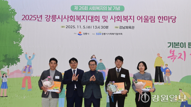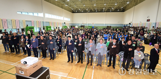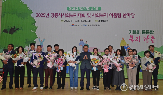‘2025년 강릉시사회복지대회 및 어울림한마당’이 5일 강남체육관에서 김홍규 강릉시장, 이재석 강릉시사회복지협의회장을 비롯한 사회복지시설·기관·단체·사회복지공무원·시민 등 약 300여 명이 참석한 가운데 열렸다. 강릉=권태명기자