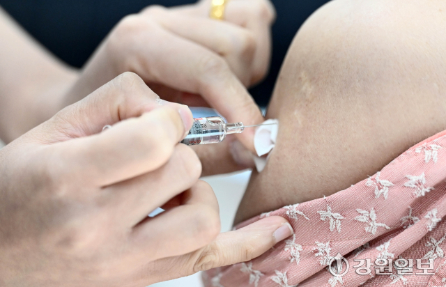 6일 한국건강관리협회 강원자치도지부에서 한 시민이 독감예방접종을 하고 있다.