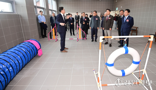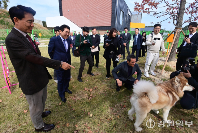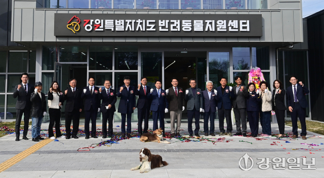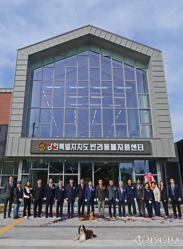 도내 최초의 공공 반려복지문화시설인 '강원특별자치도 반려동물지원센터(센터장: 이상록)' 개관식이 6일 강릉시 사천면에서 김진태 도지사, 김홍규 강릉시장, 우승룡 강원일보 강릉본부장 지역 주민, 반려동물 보호단체, 수의사회 등 100여 명이 참석한 가운데 열렸다. 센터에는 세미나실, 행동 교정실, 반려동물 클리닉, 실내·야외 놀이터, 다목적 강당 등을 갖춘 교육·체험·치유 중심의 복합공간으로 운영된다. 강릉=권태명기자