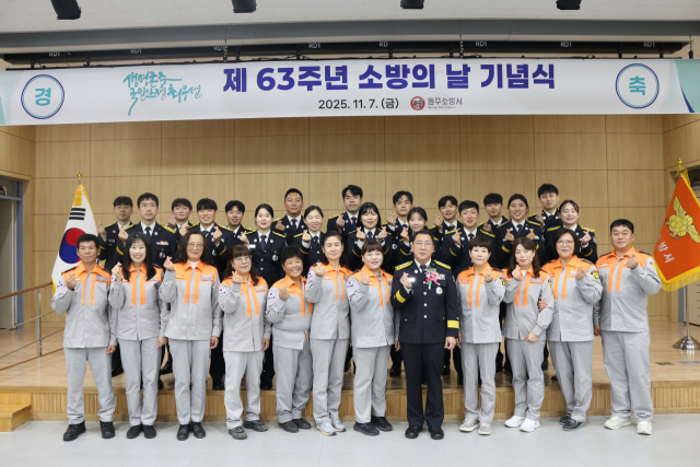 원주소방서(서장:김정기)는 지난 7일 소방서 대회의실에서 제63주년 소방의 날을 맞아 100여명의 소방가족이 참석한 가운데 기념행사를 개최했다.