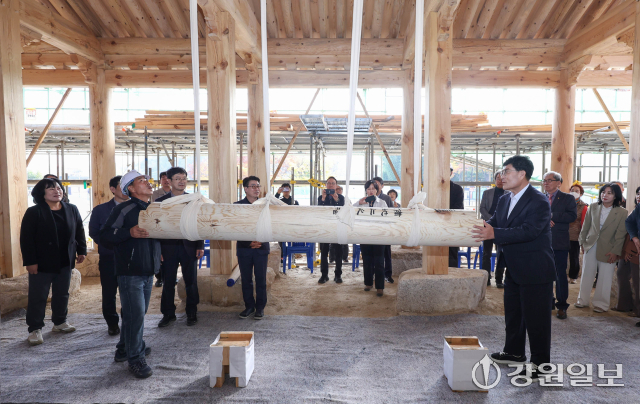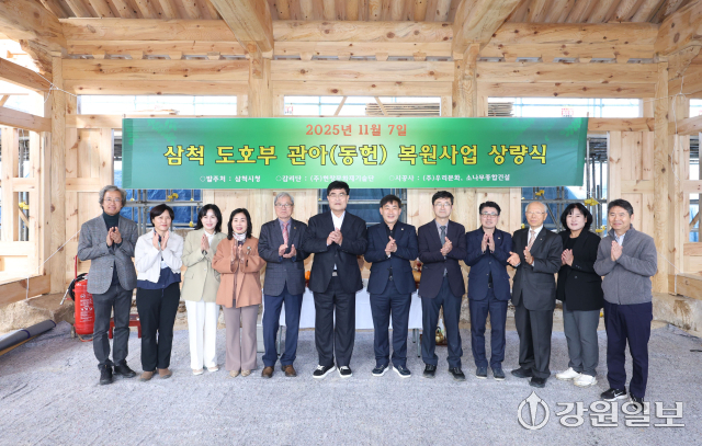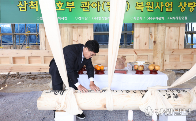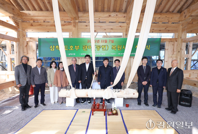 삼척시는 7일 조선시대 삼척의 행정과 문화 중심지였던 삼척도호부 관아(동헌)의 복원공사 현장에서 상량식을 가졌다.