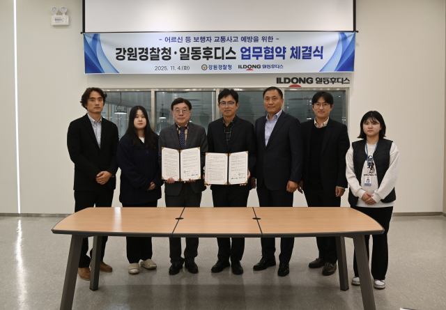 강원경찰청과 춘천 일동후디스는 4일 교통 취약계층 보행자 교통사고 예방 업무협약을 체결했다.
