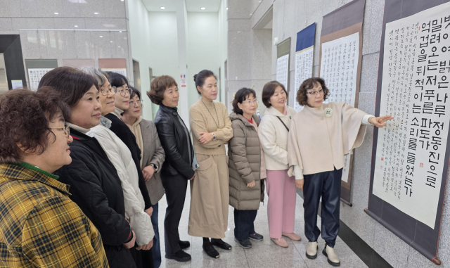 홍천 소담한글서지회 제11회 아름다운 우리글씨젼 개막식이 10일 홍천문화원 1층 전시실에서 박주선 홍천문화원장, 박원재·최창덕목사, 한종원 강원일보 홍천지사장, 이상돈 지도강사, 김연희 회장 등이 참석한 가운데 열렸다. 24명의 회원이 참여하는 이번 전시회는 오는 14일까지 이어진다.