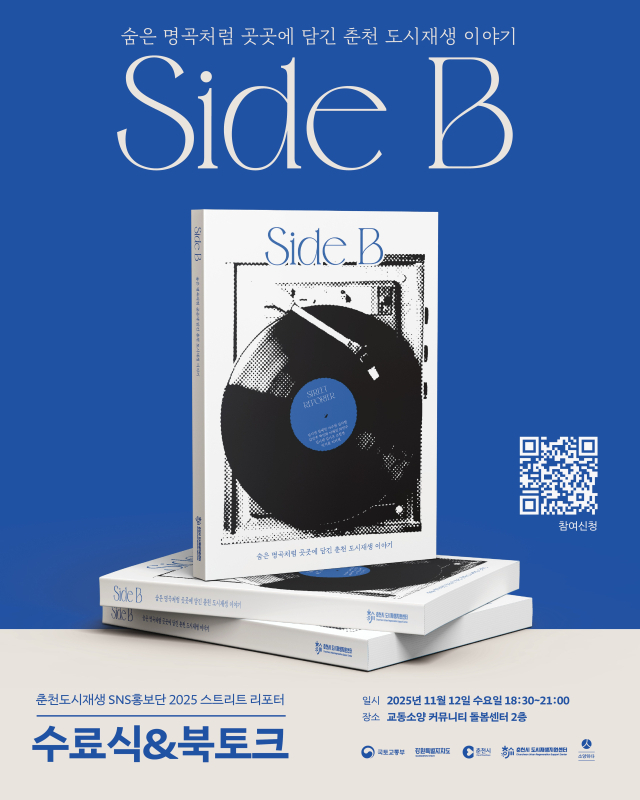 시 관계자는 “‘Side B’는 행정이 아닌 시민의 눈으로 바라본 도시재생의 이야기”라며 “이번 행사가 시민이 함께 도시재생의 의미를 나누고 참여하는 계기가 되길 기대한다”고 말했다.
