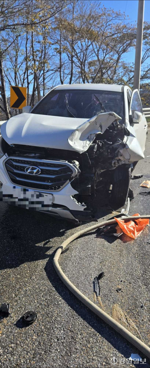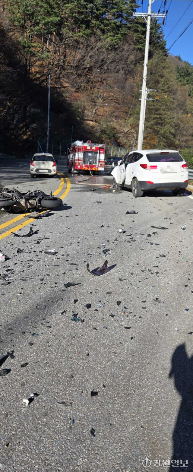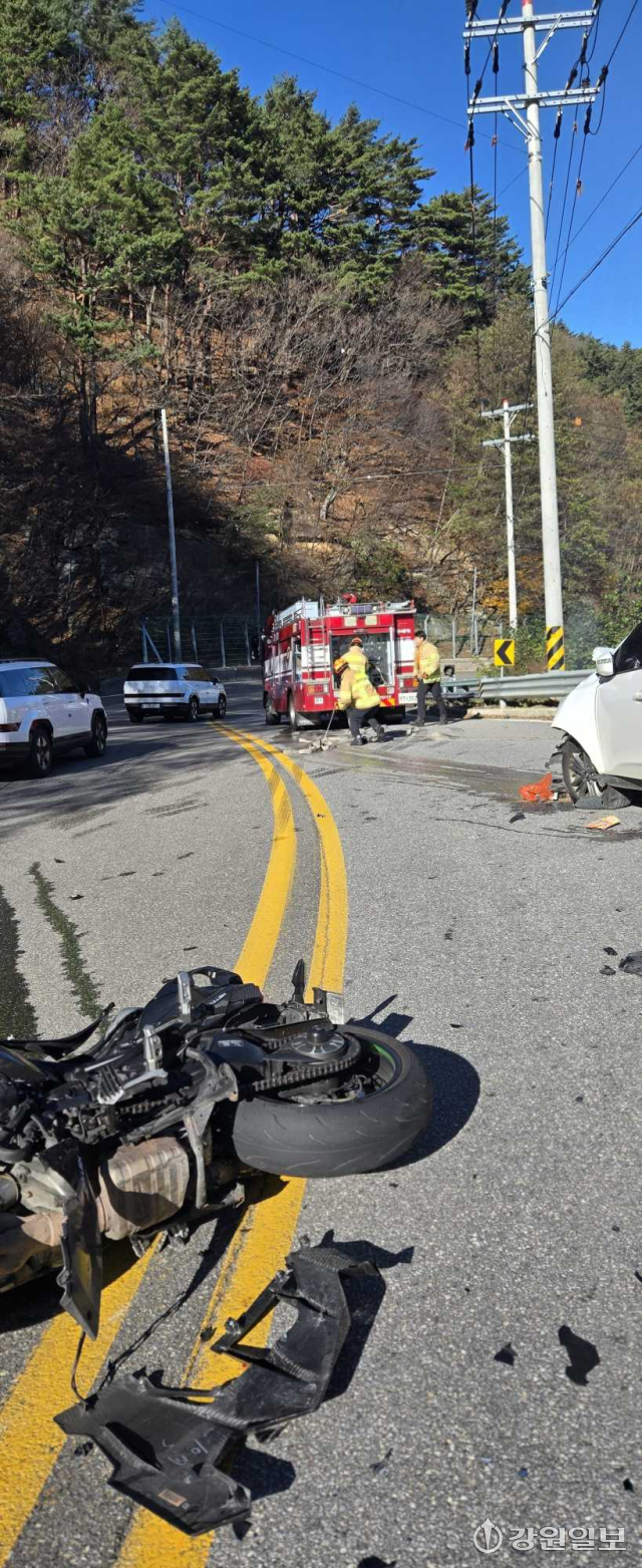 10일 오후 1시45분께 강릉시 성산면에서 오토바이와 SUV 차량이 충돌했다.