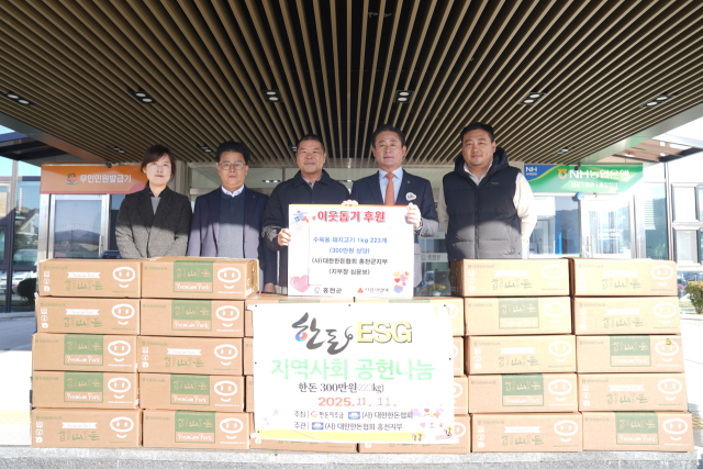 (사)대한한돈협회 홍천군지부(지부장:심윤보)는 11일 홍천군청을 방문해 300만원 상당의 돼지고기 1㎏ 223개를 취약계층을 위해 기탁했다.