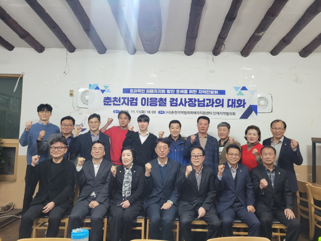 이응철 춘천지검 검사장과 유정호 차장검사, 춘천범죄피해자지원센터(이사장:이금선) 등은 11일 인제에서 센터 인제지역협의회(회장:김광수)와 간담회를 열고 범죄피해자에 대한 실질적인 지원 방안 등을 논의했다.