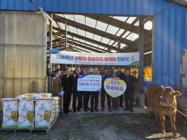농협강원본부와 강릉시지부, (사)나눔축산운동본부 강원도지부, 강릉축산농협은 11일, 강동면 한 축산농가에서 ‘사랑의 암송아지 릴레이 전달식’을 개최했다.