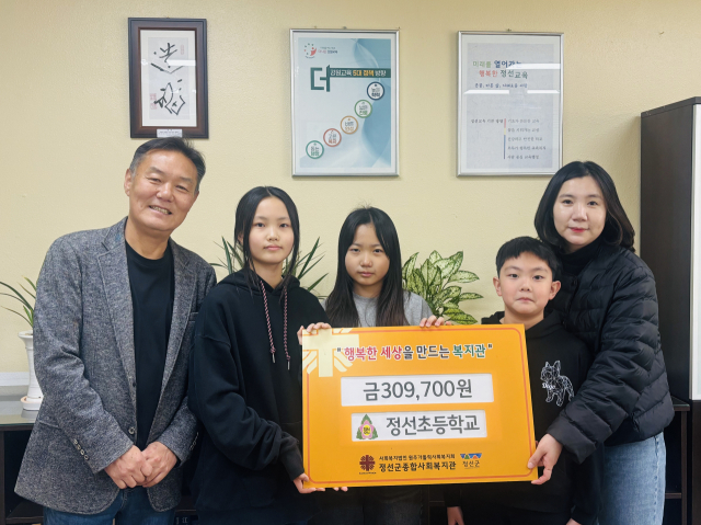정선초등학교(교장:이수일)가 13일 정선군종합사회복지관에서 교내 ‘은행나무 축제’에서 운영한 알뜰시장 수익금 30만 9,700원 전액을 어려운 이웃을 위해 써 달라며 정선군종합사회복지관에 기부했다.