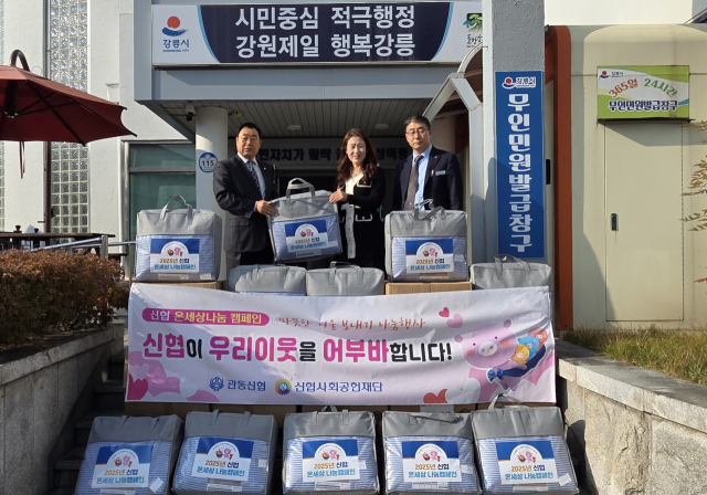 관동신협(이사장:이상혁)은 13일 강남동, 성덕동 주민센터에 300만 원 상당의 겨울 이불 30채를 전달했다.