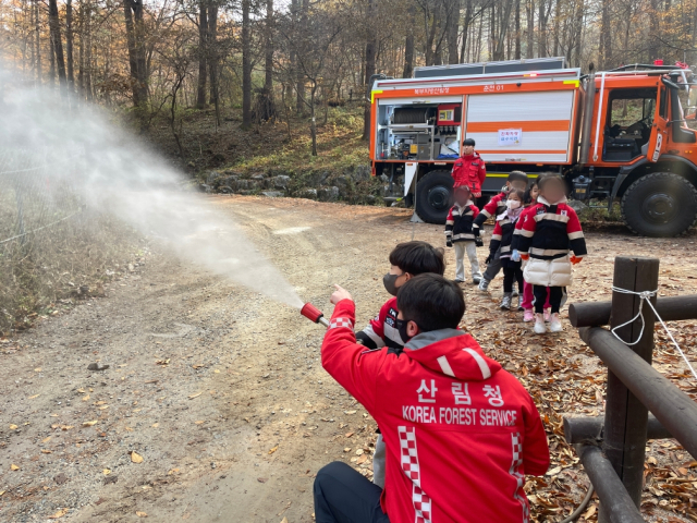 춘천국유림관리소는 춘천시 남산면 강촌리 산136-1번지에 위치한 유아숲체험원에서 봄봄유치원 원아(만 5세) 20명을 대상으로 ‘미래세대 대상 산불진화체험’을 실시했다.
