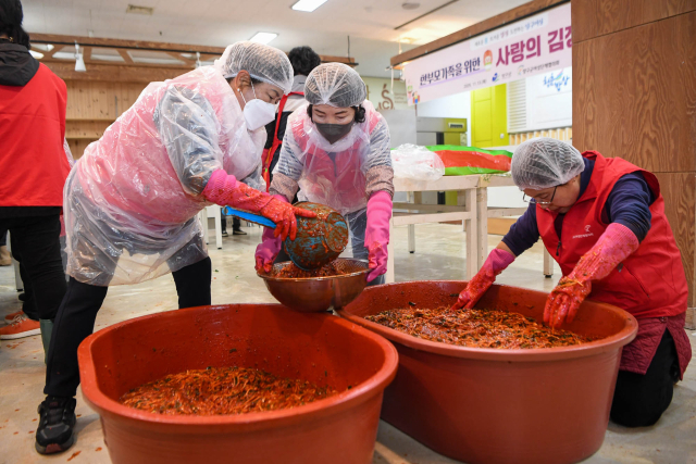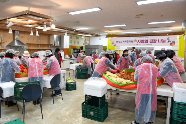 한부모가족을 위한 사랑의 김장 나눔 행사가 13일 양구청소년수련관에서 서흥원 양구군수, 정창수 양구군의장 및 군의원, 김왕규 도의원, 김경미 양구군여성단체협의회장을 비롯한 회원 등이 참석한 가운데 열려 따뜻한 나눔의 마음을 함께했다.