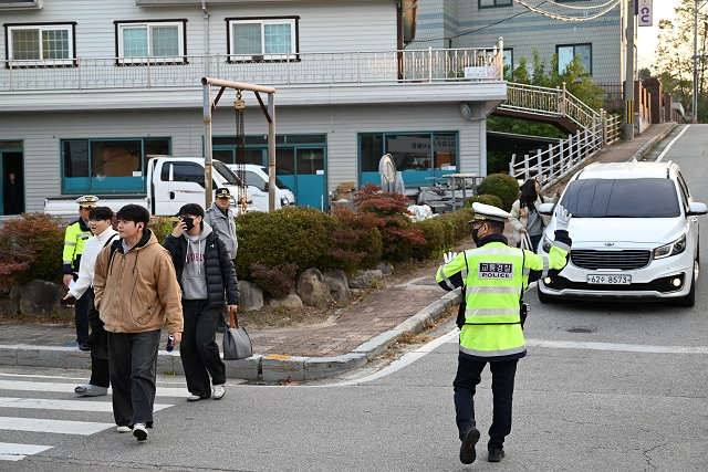 시험을 보는 수험생들을 위한 노력은 계속됐다. 이날 오전 8시21분께 강릉 경포고 인근 아파트에서 낙엽 치우는 기계 소리가 너무 커 수험생들에게 방해가 된다는 112신고가 학교 행정실로부터 접수됐다. 경찰은 곧바로 해당 아파트를 찾아 기계 사용을 중단하도록 조치했다.