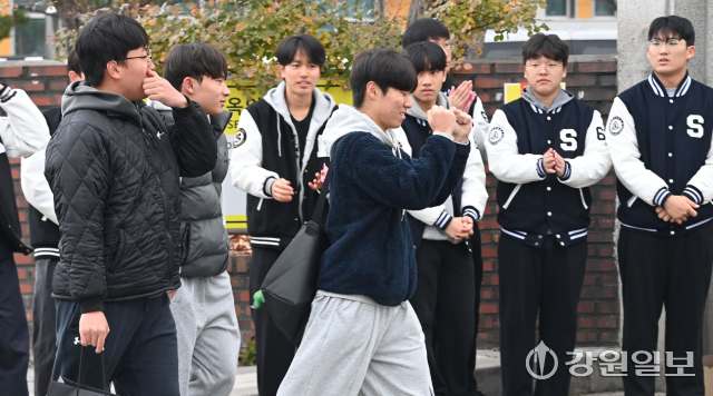 이은탁(원주고 3년)학생은 “전체적인 난이도는 9월 모의고사랑 비슷한 평범한 수준으로 화법과 작문의 경우 지문의 이해 난이도가 낮아 빠르게 풀 수 있었다. 생활과 윤리도 같은 이유로 비교적 쉬운 편에 속했다”고 말했다. 정치외교학 전공을 희망하고 있는 오진규(춘천 성수고3년)학생은 “국어는 모의고사 등 평소보다는 어렵게 느껴졌지만 수학은 EBS 교재에서 비슷하게 풀던 문제처럼 느껴졌다”고 말했다.