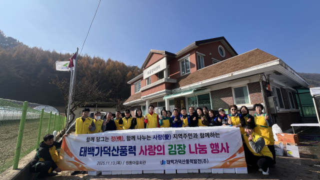 태백가덕산풍력발전(주)(대표:한기덕)은 13일 삼수동에서 삼수동지역사회보장협의체 회원, 자원봉사자 등이 참석한 가운데 지역 취약계층을 위한 사랑의 김장 나눔 행사를 열었다. 김장김치 180상자는 삼수동 180가구에 전달될 예정이다.