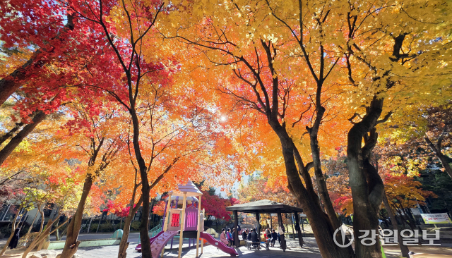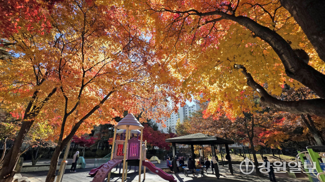 단풍이 도심까지 내려오며 가을이 절정으로 향하고 있다. 13일 춘천시 석사동의 한 놀이터에 단풍이 울긋불긋하게 물들어 있다. 신세희기자단풍이 도심까지 내려오며 가을이 절정으로 향하고 있다. 13일 춘천시 석사동의 한 놀이터에 단풍이 울긋불긋하게 물들어 있다. 신세희기자단풍이 도심까지 내려오며 가을이 절정으로 향하고 있다. 13일 춘천시 석사동의 한 놀이터에 단풍이 울긋불긋하게 물들어 있다. 신세희기자