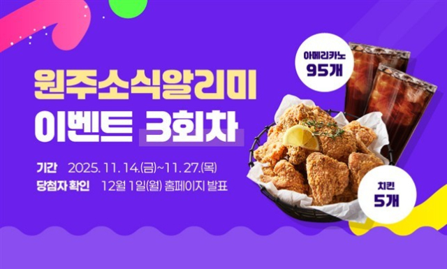 【원주】원주시는 시민과의 소통을 강화하고 원주소식알리미 서비스를 활성화하기 위해 오는 27일까지 구독 이벤트를 진행한다고 밝혔다.