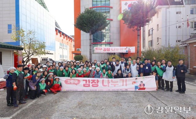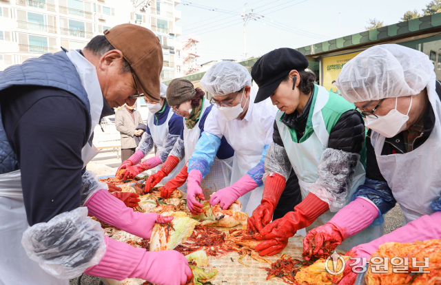 새마을운동 삼척시지회 회원들은 지난 14일 새마을 지회 사무실 앞마당에서 삼표시멘트 후원으로 사랑의 김장을 담궈 취약계층 500가구에 10kg씩 전달했다.