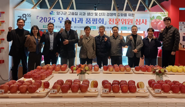 지난 13일 양구군 사과홍보관에서 열린 우수 사과 품평회는 양구 사과 재배 농가의 고품질 사과 생산을 유도하고, 과수 경쟁력 강화와 양구 사과의 우수성을 홍보하기 위해 매년 열리고 있다.