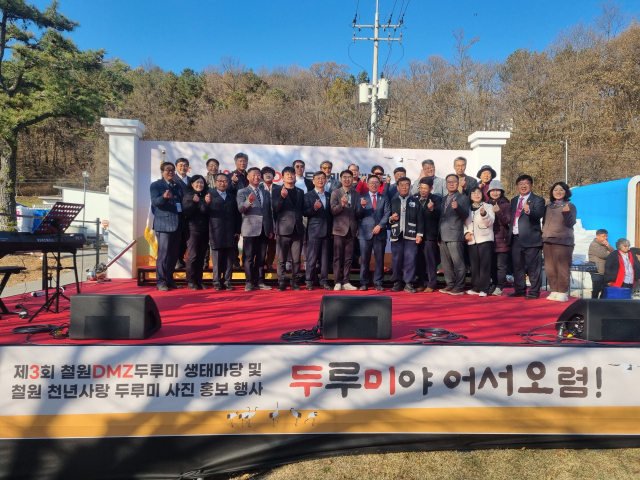【철원】두루미를 보호와 생태관광 활성화를 위한 '제3회 철원DMZ 두루미생태마당 및 철원 천년사랑 두루미 사진 홍보 행사'가 성료됐다. 지난 15일 동송읍 양지리 DMZ두루미평화타운에서 열린 이번 행사는 철원두루미운영협의체가 주최하고 철원군이 후원했으며, 한종문 철원군의장 및 군의원, 유광종 철원부군수, 지역 두루미보호단체 회원 등 100여명이 참석했다.