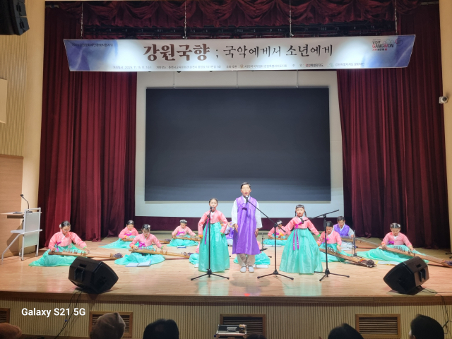 (사)한국국악협회 강원특별자치도지회(회장:한춘녀)는 13일 춘천교육문화관에서 2025년 강원문화재단 공모사업으로 ‘강원국향:국악에게서 소년에게’ 공연을 펼쳤다. 이날 19개팀 84명의 국악 꿈나무들과 지도자들이 참가했고, 원로국악인들이 후원한 장학금이 김태경(풍물), 김태린(한국무용), 김라희(전통기악), 소리아(전통성악) 팀에게 전달됐다.