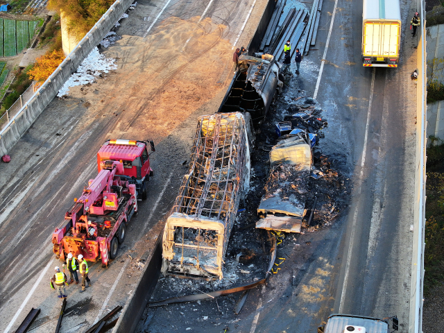 이 사고로 탱크로리 차량과 14t·2.5t 화물차 2대 등 차량 3대에서 불이 나 소방당국에 의해 오전 5시 40분께 모두 진화됐다.