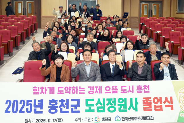 ■도심 정원사 양성교육으로 주민 역량 강화=홍천군이 17일 홍천군농업기술센터에서 개최한 ‘2025 도심정원사 양성 기초과정’ 수료식. 이날 현장에는 20대부터 70대까지 남녀노소 42명이 수료생으로 참석했다.