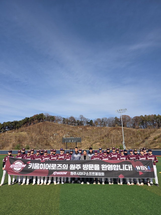 원주시야구소프트볼협회(회장:정병진)는 17일 원주 태장체육단지 야구장에서 프로야구 키움 히어로즈의 마무리 캠프 환영식을 진행했다. 키움은 오는 24일까지 태장체육단지 야구장에서 30명의 선수이 참가한 가운데 개인 기량 향상에 초점을 둔 2025시즌 마무리캠프를 진행한다. 정병진 회장은 “선수들이 이번 훈련을 계기로 추후 경기에서도 기량을 마음껏 펼치길 기대하겠다”며 “협회는 선수들의 훈련 편의를 위해 적극적으로 지원하겠다”고 밝혔다.