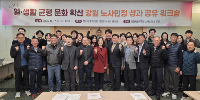 강원 노사민정협의회는 17일 모나용평리조트 그린피아 콘도에서 ‘일·생활 균형 문화 확산 성과 공유 워크숍’을 개최했다. 이번 워크숍은 올해 노사민정협의회 사업을 통해 발굴된 ‘워라밸’ 실천 강소기업들의 사례를 공유하고 확산하기 위해 마련됐다.