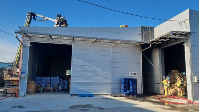 ◇17일 오전 8시9분께 양양군 강현면 119안전센터 인근 창고에서 불이 났다. 사진=강원특별자치도소방본부 제공
