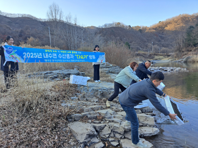 양구군은 토종 수산종자 보호와 자연 생태환경 복원을 위해 2011년부터 내수면 방류사업을 지속적으로 추진, 최근 5년간 총 660만마리의 치어 및 치패를 방류했다. 올해는 서식 환경 변화로 감소하고 있는 내수면 어종 보호를 위해 지난해보다 3,000만원 증액한 총 3억3,000만원의 예산을 투입했다.
