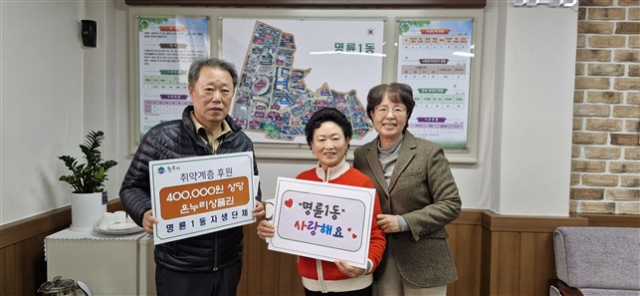원주 명륜1동주민자치위원회, 통장협의회, 새마을회는 지난 17일 명륜1동지역사회보장협의체에 방문해 40만원 상당의 온누리상품권을 전달했다.