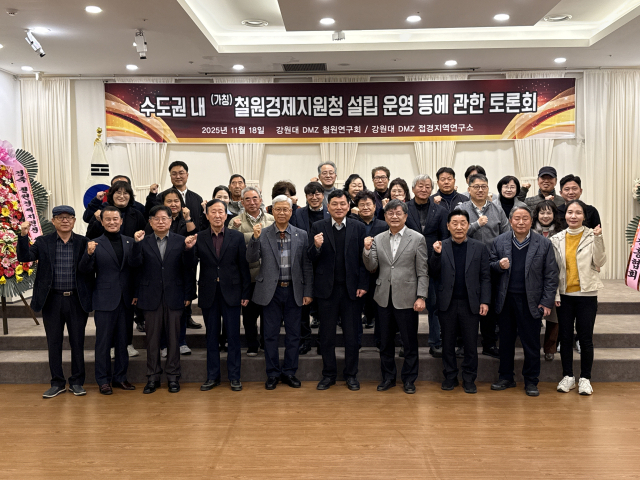 【철원】강원대DMZ접경지역연구소 철원연구회(공동회장:신인철·류종현)가 18일 한탄리버스파호텔 대연회장에서 철원지역 발전을 위한 대토론회를 개최했다. '수도권내 철원경제지원청 설립 운영 및 철원 관광산업 비전' 등을 주제로 열린 이날 토론회에서는 신인철 공동회장이 '수도권 내 철원경제지원청 설립 운영 필요성과 전망'을 주제로 기조발표를, 김창환 강원대 교수(강원대DMZ접경지역연구소장)가 '철원의 가치와 자원을 활용한 관광산업의 비전'에 대해 주제발표를 했다.