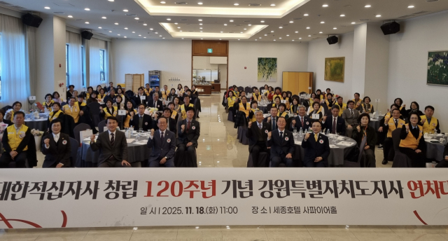 대한적십자사 강원특별자치도지사는 18일 춘천 세종호텔에서 창립 120주년을 기념하는 ‘2025 대한적십자사 강원자치도지사 연차대회’를 개최했다.