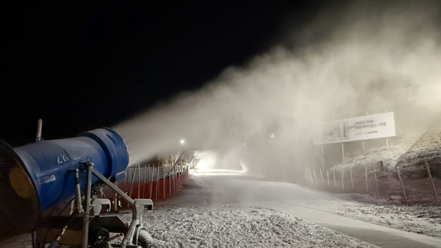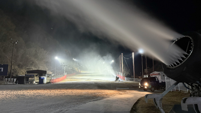 12월 초 개장을 앞둔 엘리시안 강촌 스키장이 기온이 영하에 접어들면서 본격적인 제설 작업을 시작했다.