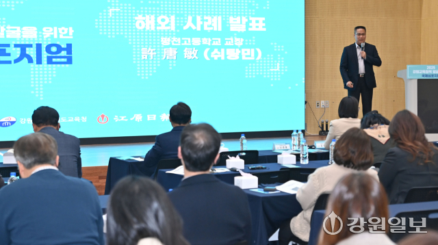 저출생 영향으로 지역소멸 위기에 닥친 강원특별자치도. 그래서 교육에 더 집중해야 할 때다. 대만이 그렇다. 대만도 '합계출산율 1'을 넘지 못하는 것은 우리나라와 같은 상황이다. 이곳은 교육의 혁신을 통해 미래 인재를 체계적·다각적으로 양성한다. 교육이 갖는 힘은 국가 발전의 원동력이 된다. 강원특별자치도교육청과 강원일보가 공동주최한 '2025 강원교육정책 발굴을 위한 국제 심포지엄'이 지난 18일 춘천 ICT벤처타운에서 열렸다. 엔비디아 창업자 젠슨 황을 배출한 대만의 교육 시스템을 들여다보고 강원의 미래 지향적인 교육 정책을 고민하는 자리가 됐다.